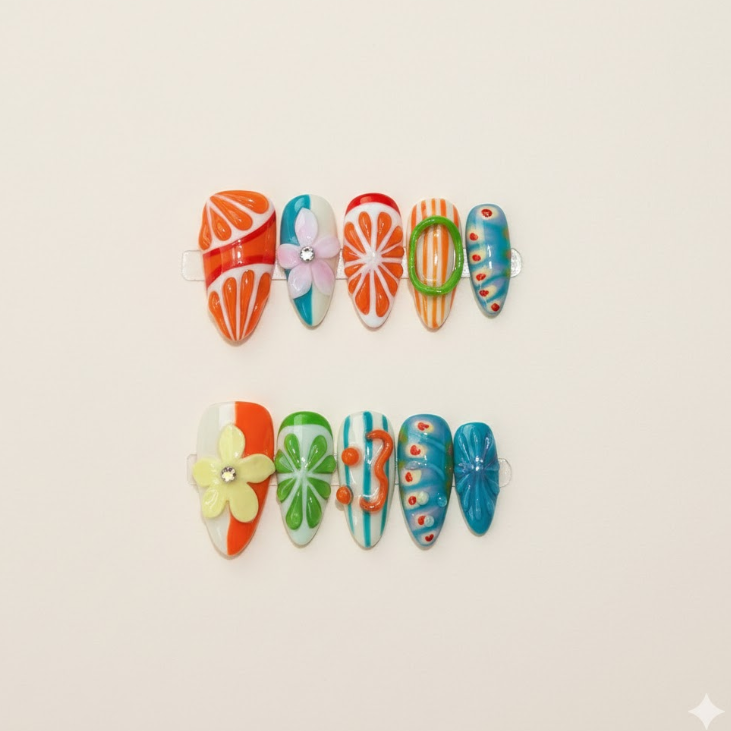 Unsere Press-On-Nägel werden von professionellen Nageltechnikern handgefertigt und haben Salonqualität. Bis zu 10-mal wiederverwendbar und halten bei jedem Tragen bis zu 4 Wochen.