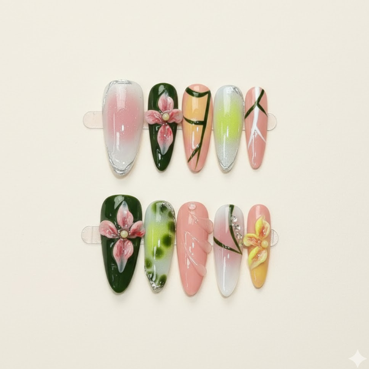 Unsere Press-On-Nägel werden von professionellen Nageltechnikern handgefertigt und haben Salonqualität. Bis zu 10-mal wiederverwendbar und halten bei jedem Tragen bis zu 4 Wochen.