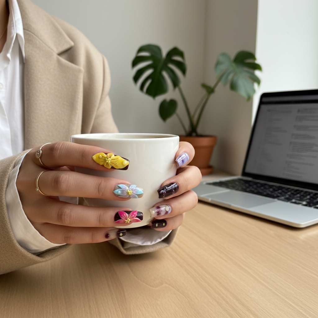 Unsere Press-On-Nägel werden von professionellen Nageltechnikern handgefertigt und haben Salonqualität. Bis zu 10-mal wiederverwendbar und halten bei jedem Tragen bis zu 4 Wochen.
