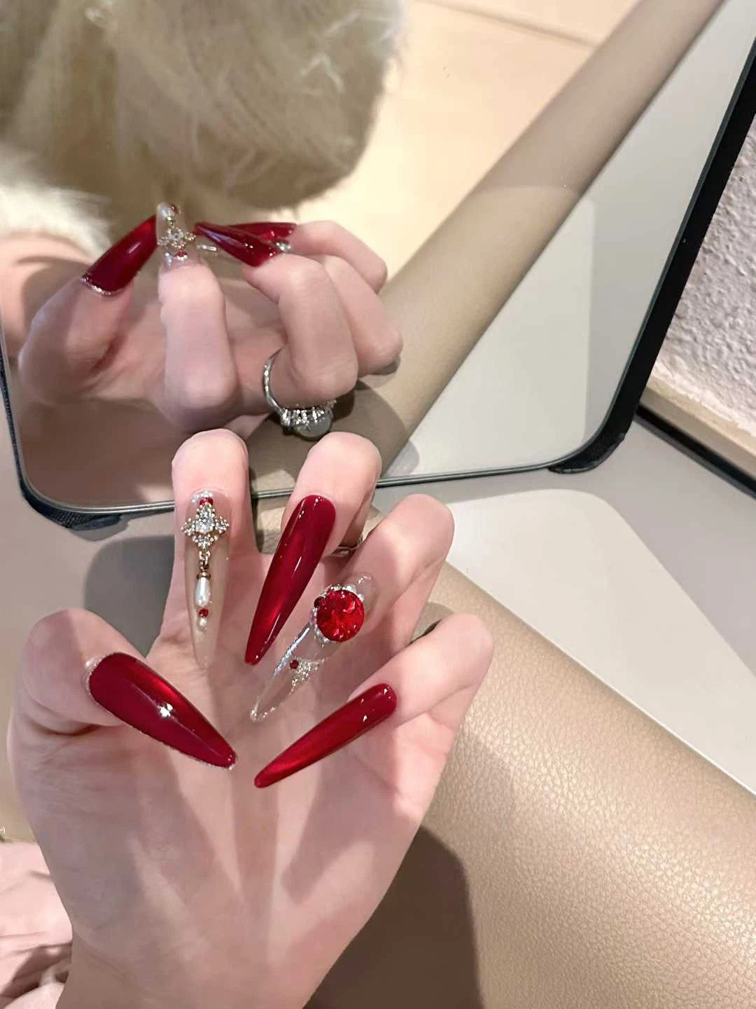 Unsere Press-On-Nägel werden von professionellen Nageltechnikern handgefertigt und haben Salonqualität. Bis zu 10-mal wiederverwendbar und halten bei jedem Tragen bis zu 4 Wochen.
