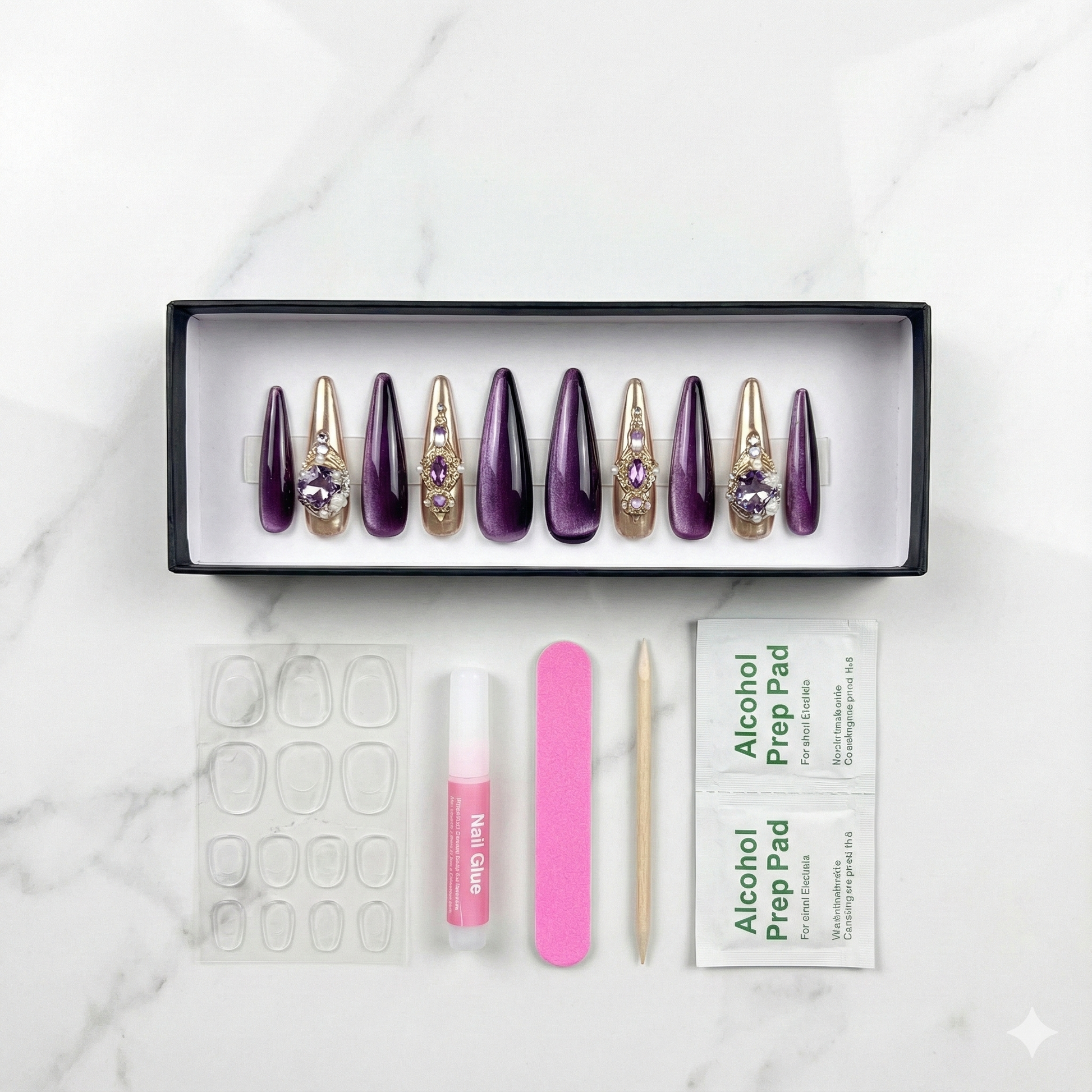 Unsere Press-On-Nägel werden von professionellen Nageltechnikern handgefertigt und haben Salonqualität. Bis zu 10-mal wiederverwendbar und halten bei jedem Tragen bis zu 4 Wochen.
