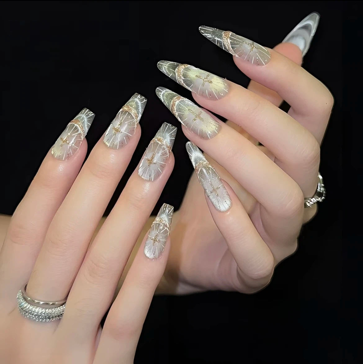 These press-on nails are insanely good quality! The material feels thick and durable, not flimsy at all, and the design looks even better in person than in the photos. They stayed on perfectly for a whole week with just regular glue��no lifting or chipping. 10/10 recommend for anyone who hates salon waits!