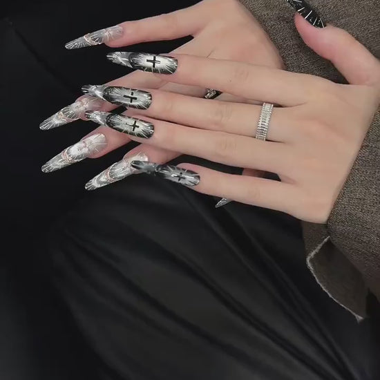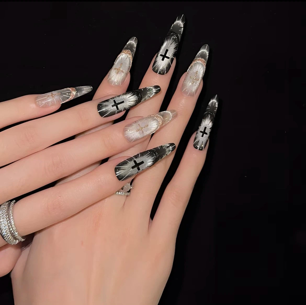 Finally found press-ons with a unique design! The mix of matte black and tiny pearl details is so chic��nothing like the basic styles I usually see. They fit my short nails perfectly, and the length doesn��t get in the way of daily tasks. Already recommended to all my friends!